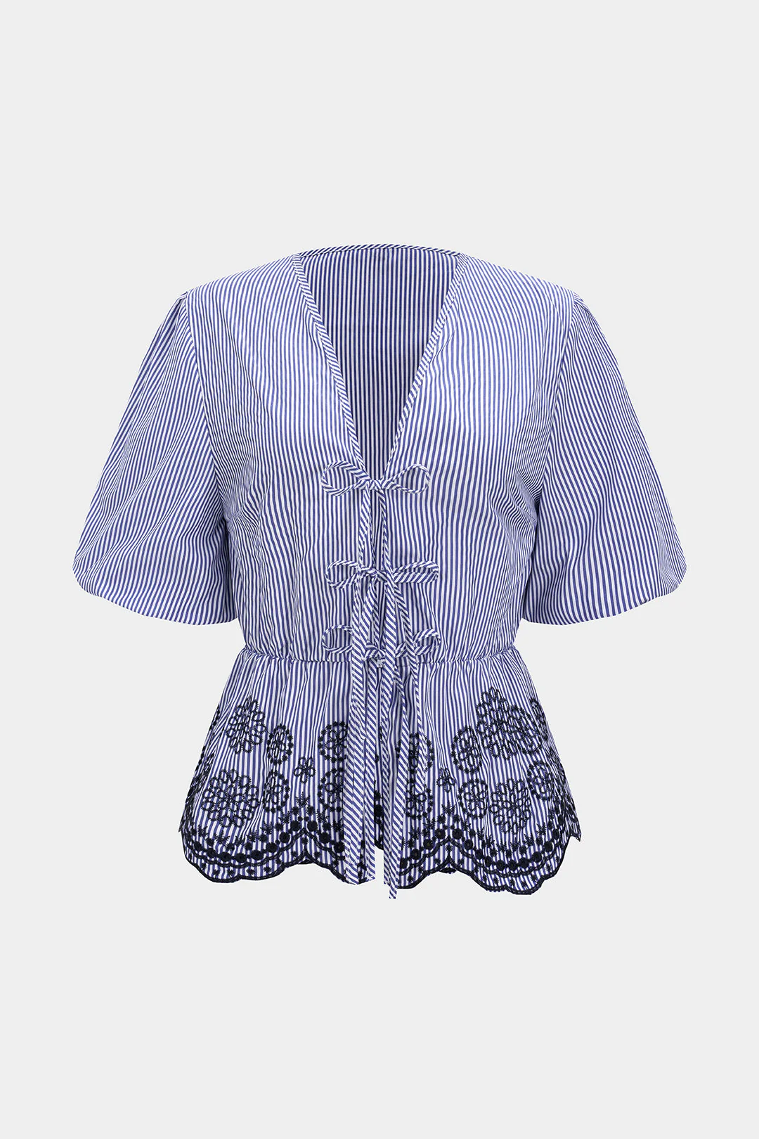 Stripes Print Embroidery Short-Sleeve Shirt